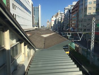 都心部はビルが屹立しているので、遠くの大きな建物であっても、広い空間か高い場所に出ないと意外とその存在が知覚されないことも多くあります。その中にあって「線路」は、都心の中に一筋の「視界空間」を生ぜしめます。 線路の遠くに見えるスカイツリー、なかなか乙なものです。
