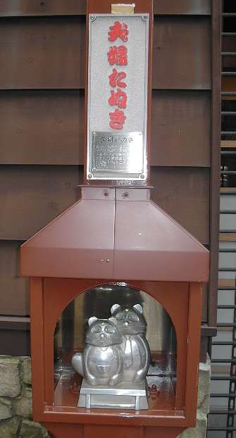 11の電灯に、12匹のたぬきがいらっしゃる。 天神たぬき 大黒たぬき